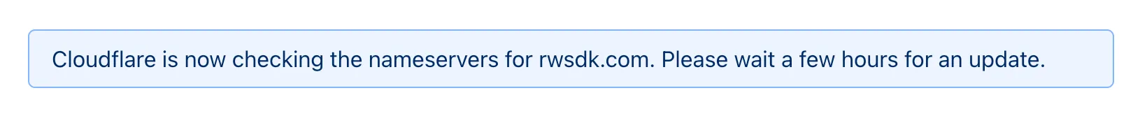 It’ll now present you with a note that it can take some time to process nameserver changes. From here, you can just wait until Cloudflare emails you, but for the impatiant amongst us, Cloudflare offers a Check nameservers now button.